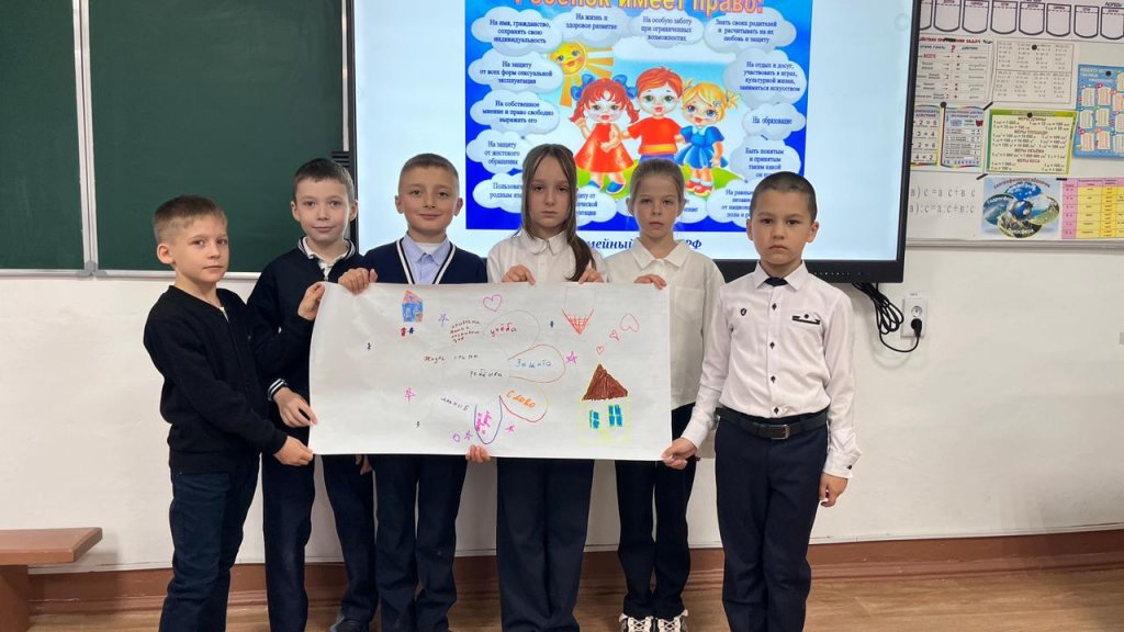 «Адал азамат» тәрбие бағдарламасын жүзеге асыру аясында 1–4 «Б» сыныптарында «Заң және менің құқығым» тақырыбында бірыңғай интерактивті сабақ өткізілді.