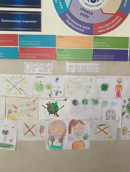 Бастауыш сыныптар арасында ЖРВИ мен тұмаудың алдын алу мақсатында тақырыптық сурет көрмесі ұйымдастырылды.