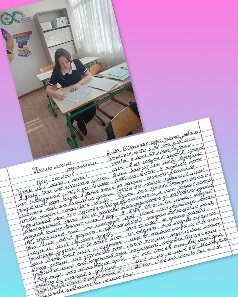 Тілейхан Тоғжан 10»а» класс написала эссе на тему «Письмо моим родителям через 20 лет».