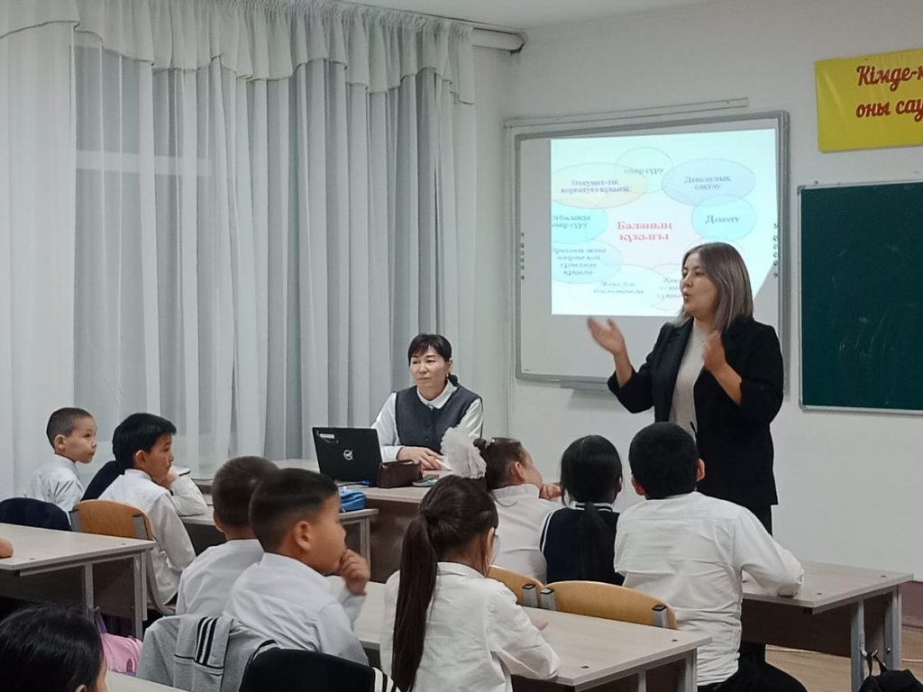 Бүгін 1-4 "А" сыныптары арасында «Заң және менің құқығым» тақырыбында бірыңғай интерактивті сабақ өткізілді.