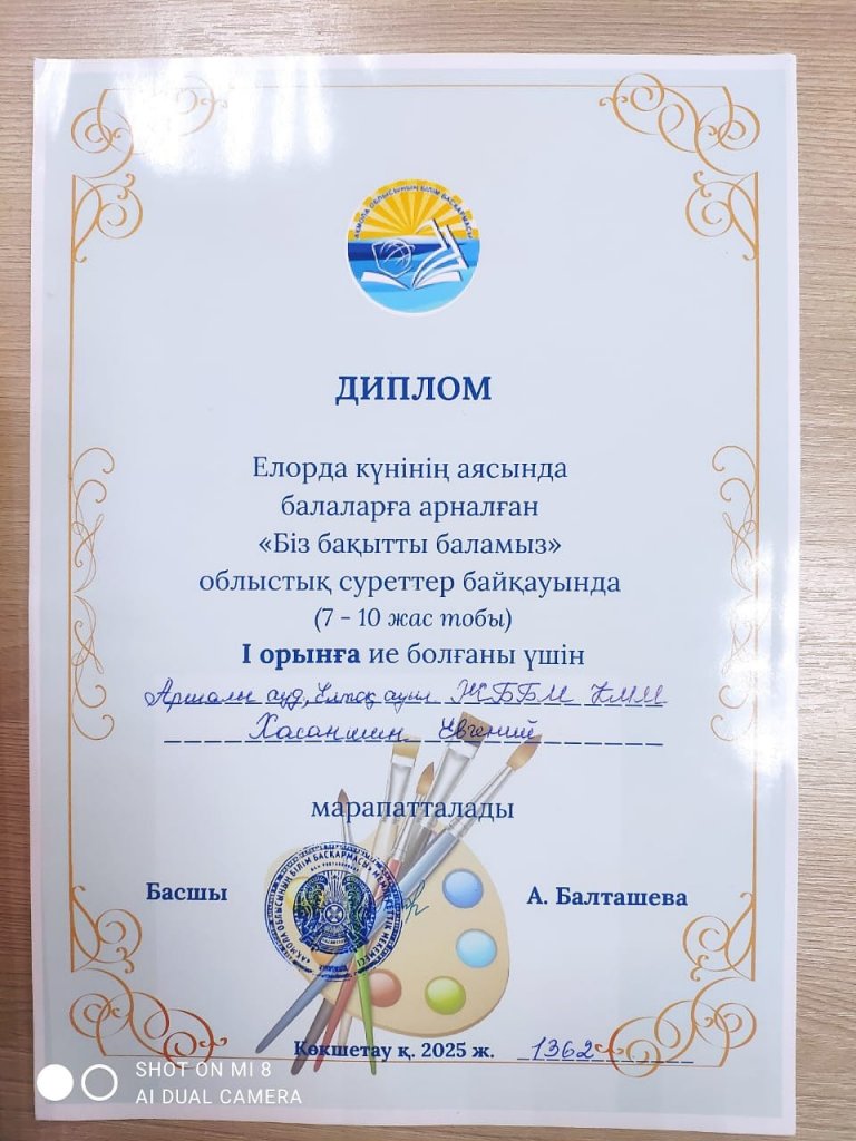 Елорда күнінің аясында балаларға арналған “Біз бақытты баламыз” облыстық суреттер байқауында біздің оқушымыз, 3 “б” сынып оқушысы Хасаншин Евгений 1 орынға ие болды.
