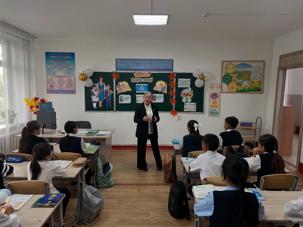 2025-2026 оқу жылының алғашқы қоңырауы соғылып, бастауыш сыныптар(2-4)арасында «Мектебім —мейірім мекені» сынып сағаты өтілді.