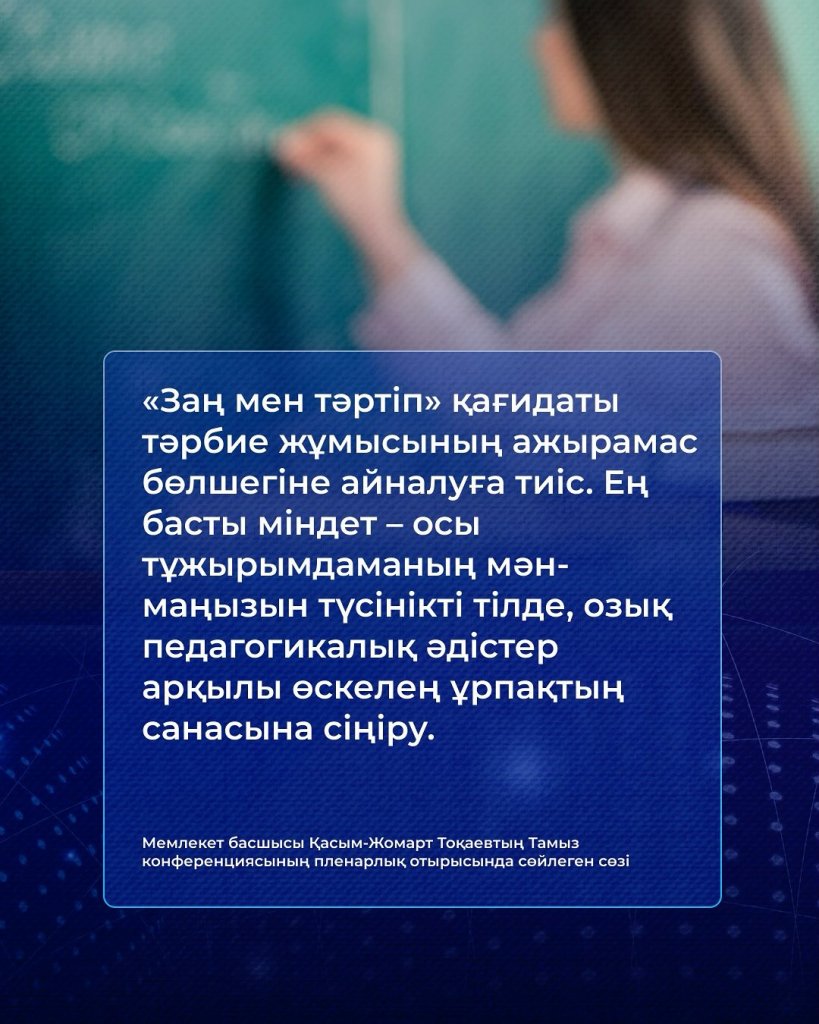 Мұғалімнің құқығын қорғау мәселесі әрдайым басты назарда болуға тиіс. Мен сөз басында ұстаздардың өз міндетінен тыс жұмыстардан босатылғанын айттым. Бірақ, кейде жергілікті билік өкілдері заң талаптарын өрескел бұзып жатады. Прокуратура органдары мұндай заң...