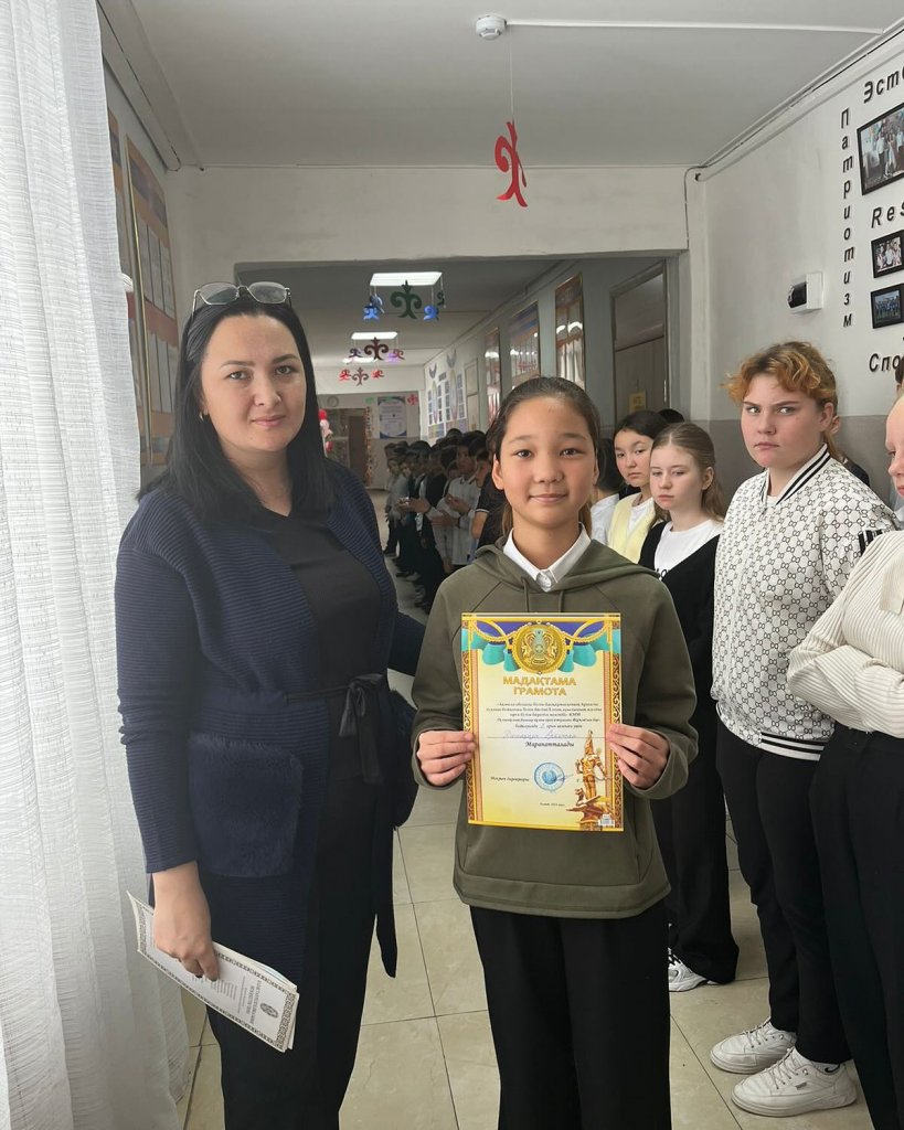 Құқығым бар” тақырыбына мектепшілік кезеніңде оқушылар арасында эссе байқауы өтті. Қатысушылар грамоталармен марапатталды