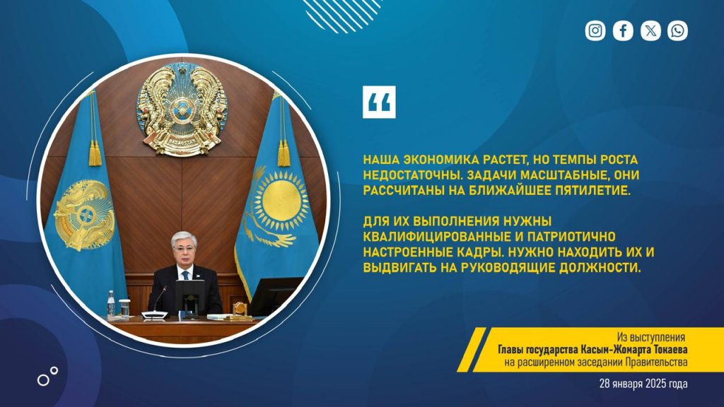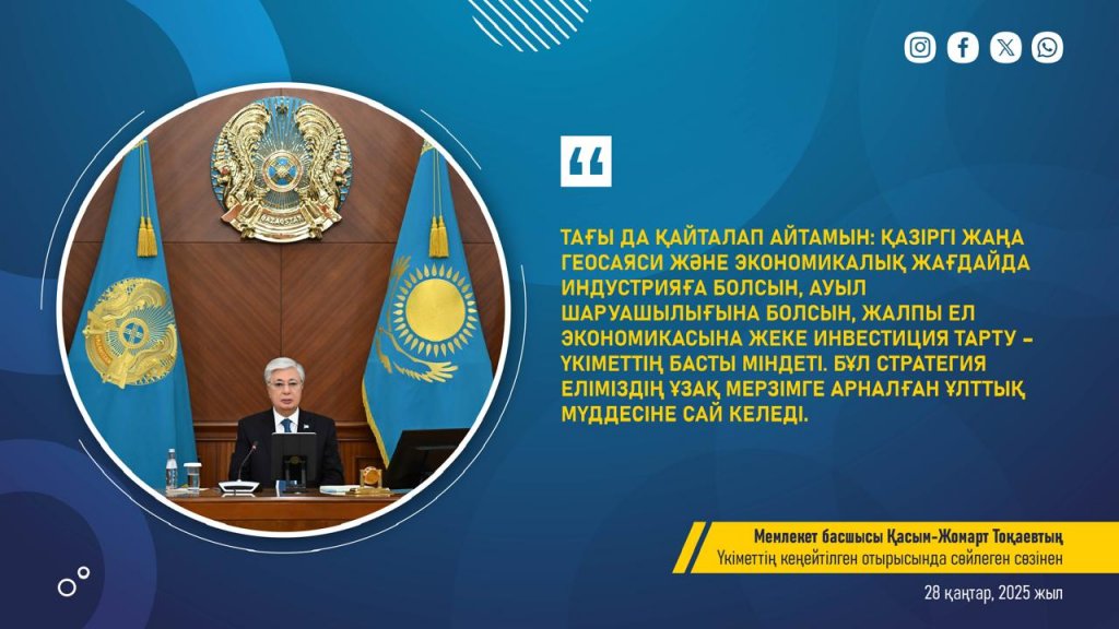 Мемлекет басшысы Қасым-Жомарт Тоқаевтың Үкіметтің кеңейтілген отырысында сөйлеген сөзінен 25 қаңтар 2025 жыл