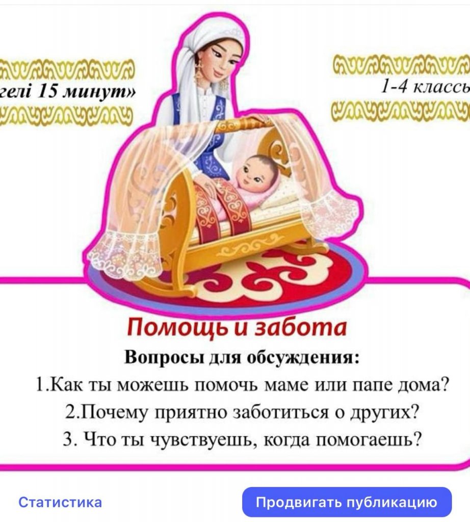 Біздің мектепте **"Өнегелі 15 минут"** бастамасы белсенді іске асырылуда, оның шеңберінде ата-аналар күн сайын балалармен Денсаулық, күн тәртібі, тәрбие, даму, жетістіктер, сондай-ақ мінез-құлық және адамгершілік құндылықтар сияқты өзекті тақырыптар бойынша 15 минуттық әңгімелер өткізеді. Әңгімелесудің мақсаты: ✅ Ересектер мен балалар арасындағы еркін қарым-қатынас дағдыларын қалыптастыру. ✅ Отбасындағы сенім мен түсіністікті нығайту. ✅ Ашықтық, қолдау және қамқорлық атмосферасын құру. Қарапайым, бірақ тұрақты әңгімелер ата-аналарға балаларын жақсы түсінуге, олардың тәжірибесі мен жетістіктерін уақытында байқауға және отбасылық құндылықтарды нығайтуға көмектеседі. Өйткені, балалар өмірдің ең маңызды сабақтарын отбасы шеңберінде алады! #Біртұтас_тәрбие #oqu_agartu_ministrligi #ganibeisembayev