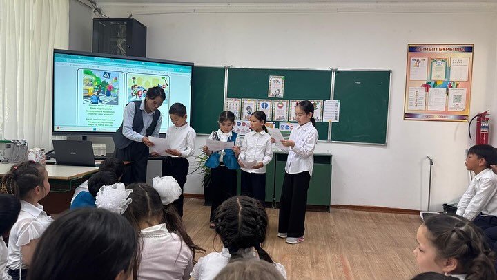 Бастауыш сынып апталығы аясында “Жол жүру ережесі” тақырыбында 1-4 “А” сыныптары арасында өткен тәрбие сағаты.