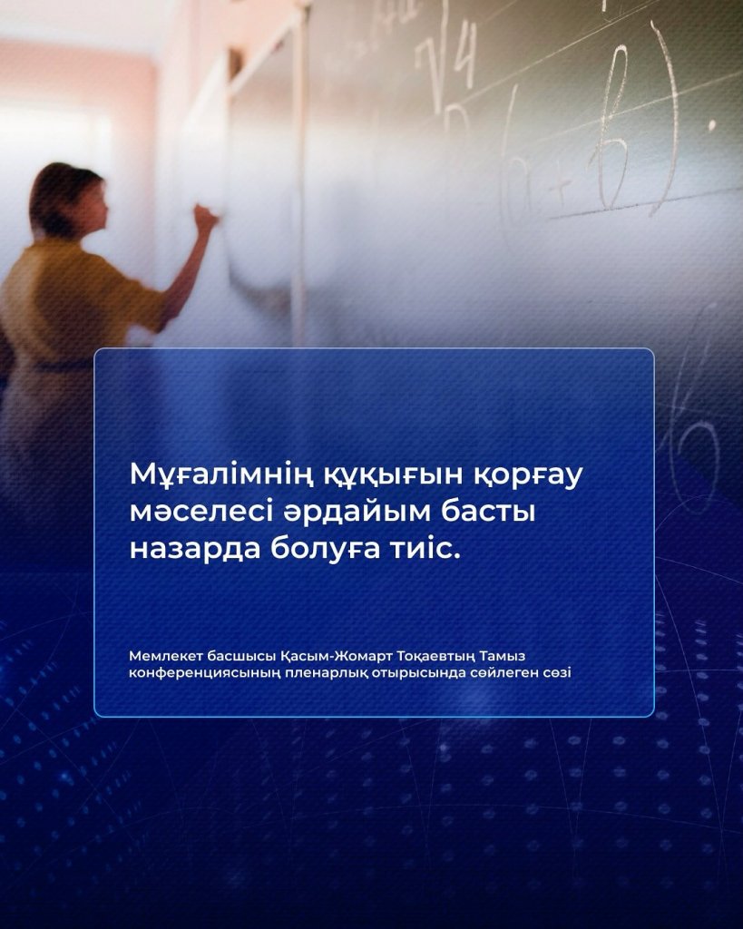 Мұғалімнің құқығын қорғау мәселесі әрдайым басты назарда болуға тиіс. Мен сөз басында ұстаздардың өз міндетінен тыс жұмыстардан босатылғанын айттым. Бірақ, кейде жергілікті билік өкілдері заң талаптарын өрескел бұзып жатады. Прокуратура органдары мұндай заң бұзушылықтарға тосқауыл қоюы керек