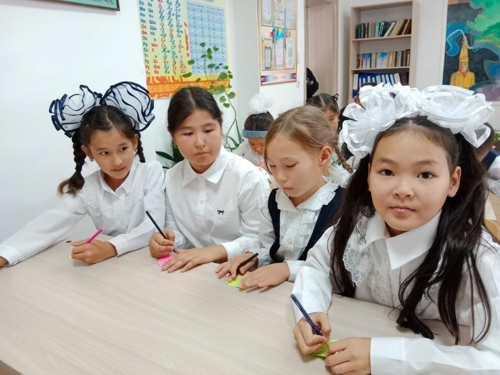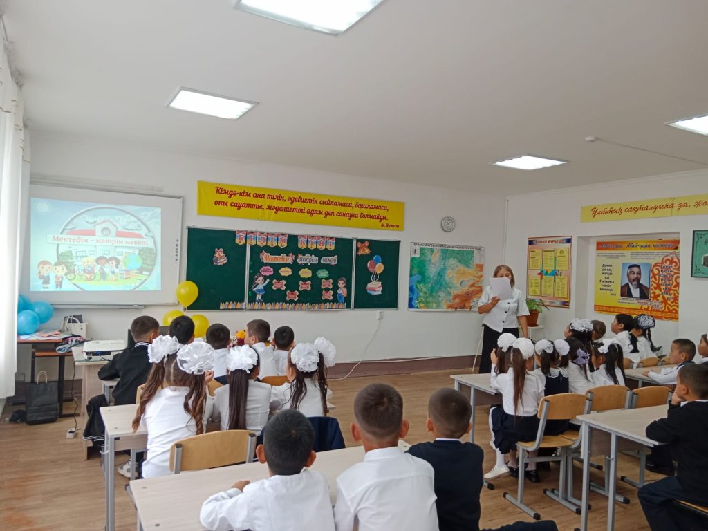 2025-2026 оқу жылының алғашқы қоңырауы соғылып, бастауыш сыныптар(2-4)арасында «Мектебім —мейірім мекені» сынып сағаты өтілді.