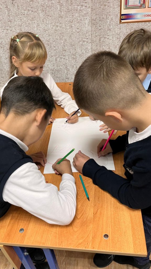 Сынып сағаты 2 "Б" сыныбында, тақырыбы «ДОСБОЛLIKЕ", біз буллингке қарсымыз!" Оқушылар достық пен қолдаудың маңыздылығымен танысты. Топтарда жұмыс істей отырып, балалар қолдарын сызып, алақандарына бір-біріне жылы сөздер жазды. Мұндай сабақ сыныпта достық және жағымды атмосфера болуы үшін мейірімді болу және сыныптастарын құрметтеу қаншалықты маңызды екенін түсінуге көмектесті. Сынып жетекшісі: Джумабекова Ф.М.