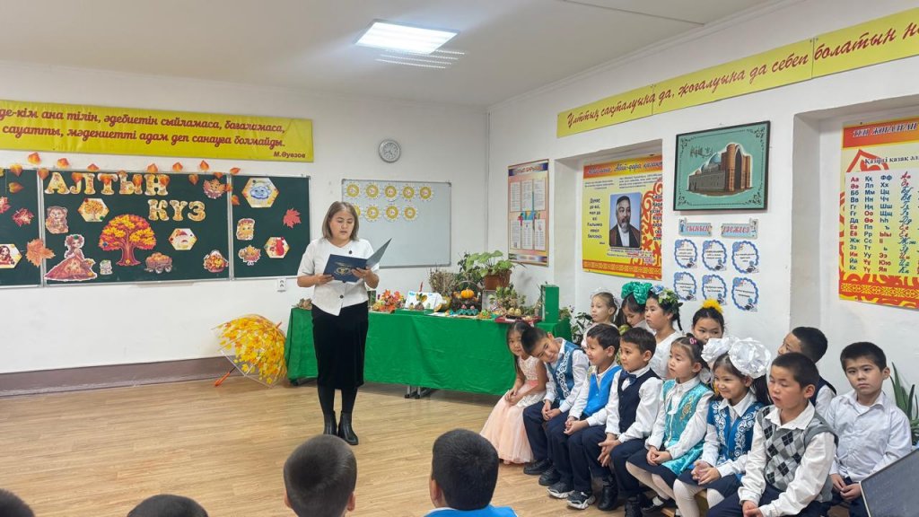 Оқушылар алтын күзді шаттықпен қарсы алып, өлеңдер оқып, ән айтып, қызықты сайыстарға қатысты.
