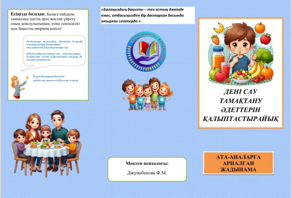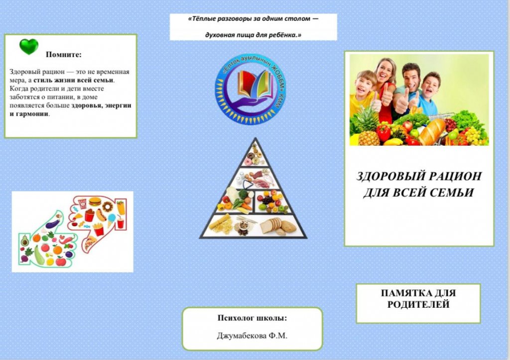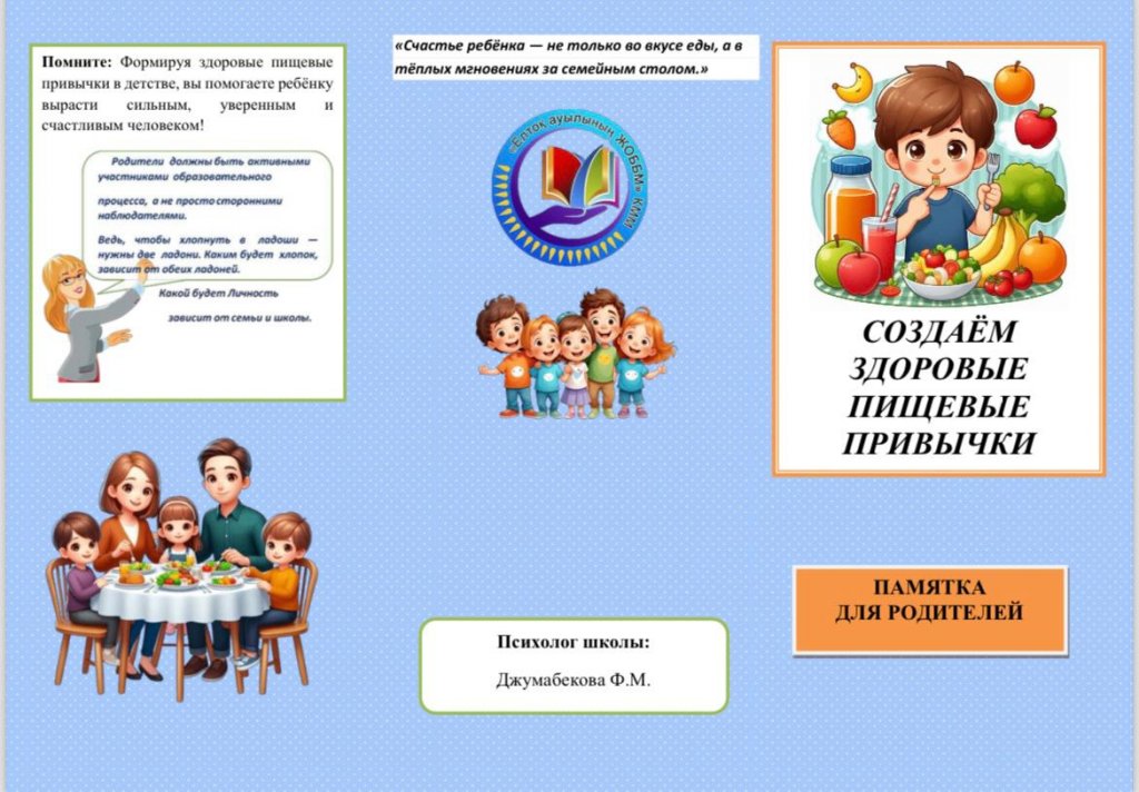 📢 «Адал азамат» бірыңғай тәрбие бағдарламасы аясында және ЦППР жоспарына сәйкес мектеп психологы Джумабекова Ф.М. ата-аналармен дені сау тамақтану әдеттерін қалыптастыру тақырыбында әңгіме өткізді.