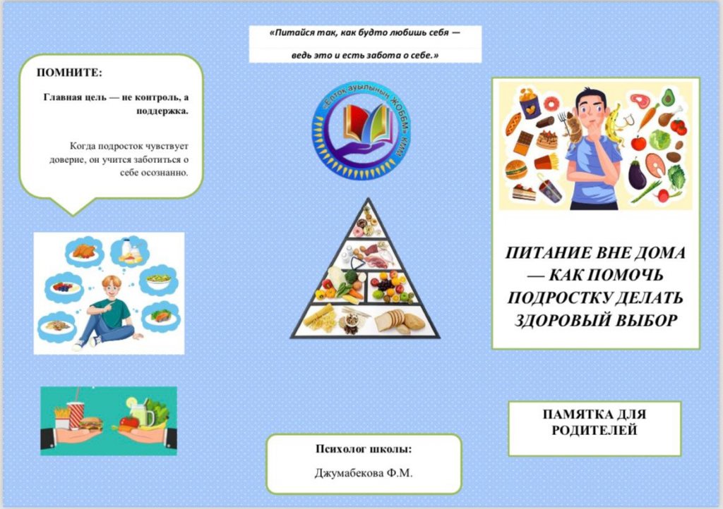 🥪 10–11 сыныптар — «Мектептен тыс тамақтану: жасөспірімге дұрыс таңдау жасауға қалай көмектесуге болады»