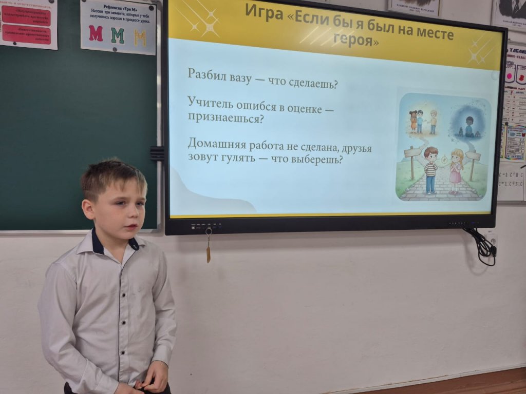 "Адал азамат" Бірыңғай тәрбие бағдарламасы аясында 4 " Б "сыныбында "Өз іс-әрекеттері үшін жауапкершілік" тақырыбында сынып сағаты өтті. Оқушылар жауапты болу нені білдіретіні, қателіктеріңізді мойындау неліктен маңызды және ойланбаған әрекеттердің салдары қандай болуы мүмкін екендігі туралы сөйлесті. Сабақ барысында оқушылар өз өмірлерінен мысалдар келтірді, топтарда жұмыс істеді және зейін мен адалдықты дамытуға бағытталған шағын тапсырмаларды орындады. Сынып сағаты балаларға әр іс-әрекеттің маңызды екенін түсінуге көмектесті, ал жауапкершілік-бұл адамды сенімді, адал және лайықты азамат ететін маңызды қасиет. Іс-шара қызықты, танымдық өтті және бастауыш сынып оқушылары арасында жауапкершілік мәдениетін қалыптастырудағы тағы бір қадам болды. Сынып жетекшісі: Снежицкая С. А. # АдалАзамат #сыныптық сағат #4бкласс # жауапкершілік # тәрбиелік жұмыс # мектеп # зейін #игі істер #балаларды тәрбиелеу # мектеп өмірі