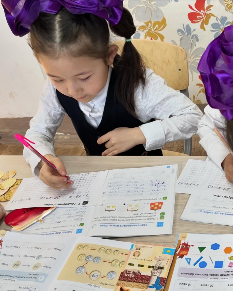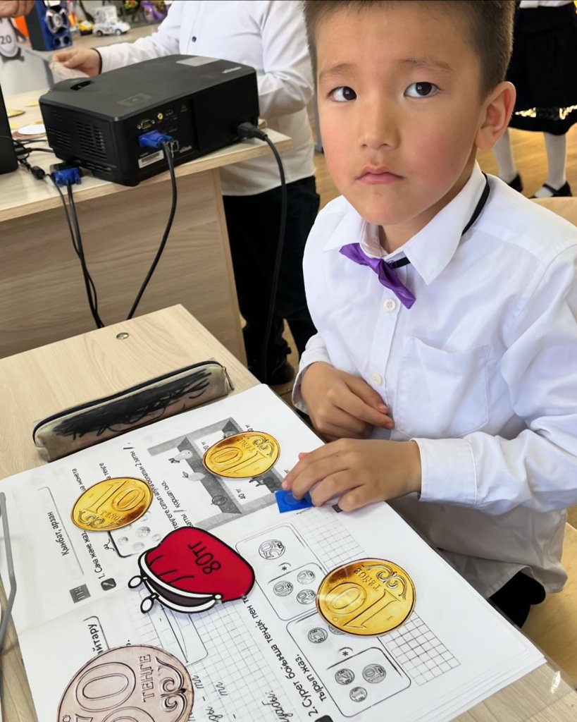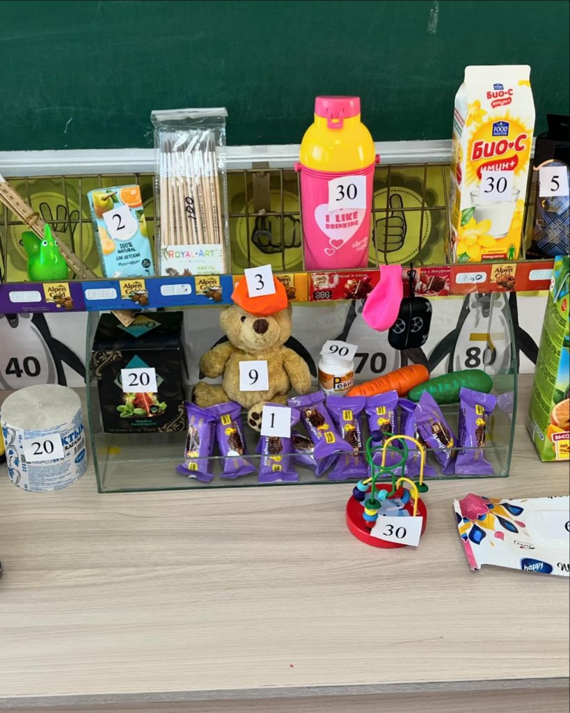 1”А” сынып оқушыларында “Сатып алу және ақша қайтару” тақырыбында ашық сабақ өтті. Оқушылар дүкен ойыны арқылы ақшаларын санауды үйренді.