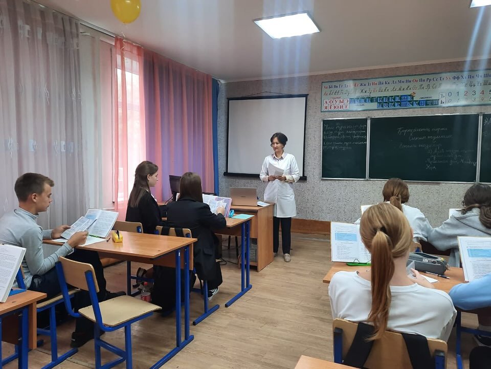 5.09.2024 ж. мектептің медицина қызметкері ЖҚЕ кезінде алғашқы медициналық көмек көрсету тақырыбында дәріс түрінде ақпараттық-түсіндіру жұмыстарын жүргізді Дәрісті А. Е. Есенғартова өткізді.